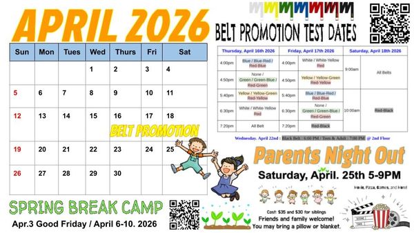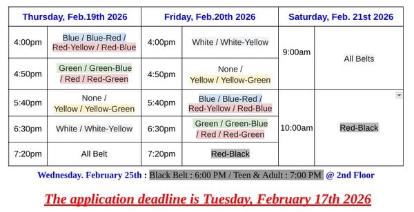 Our next belt test will be April 16-18.2026