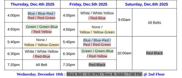 Our next belt test will be December 4th-6th, 2025.